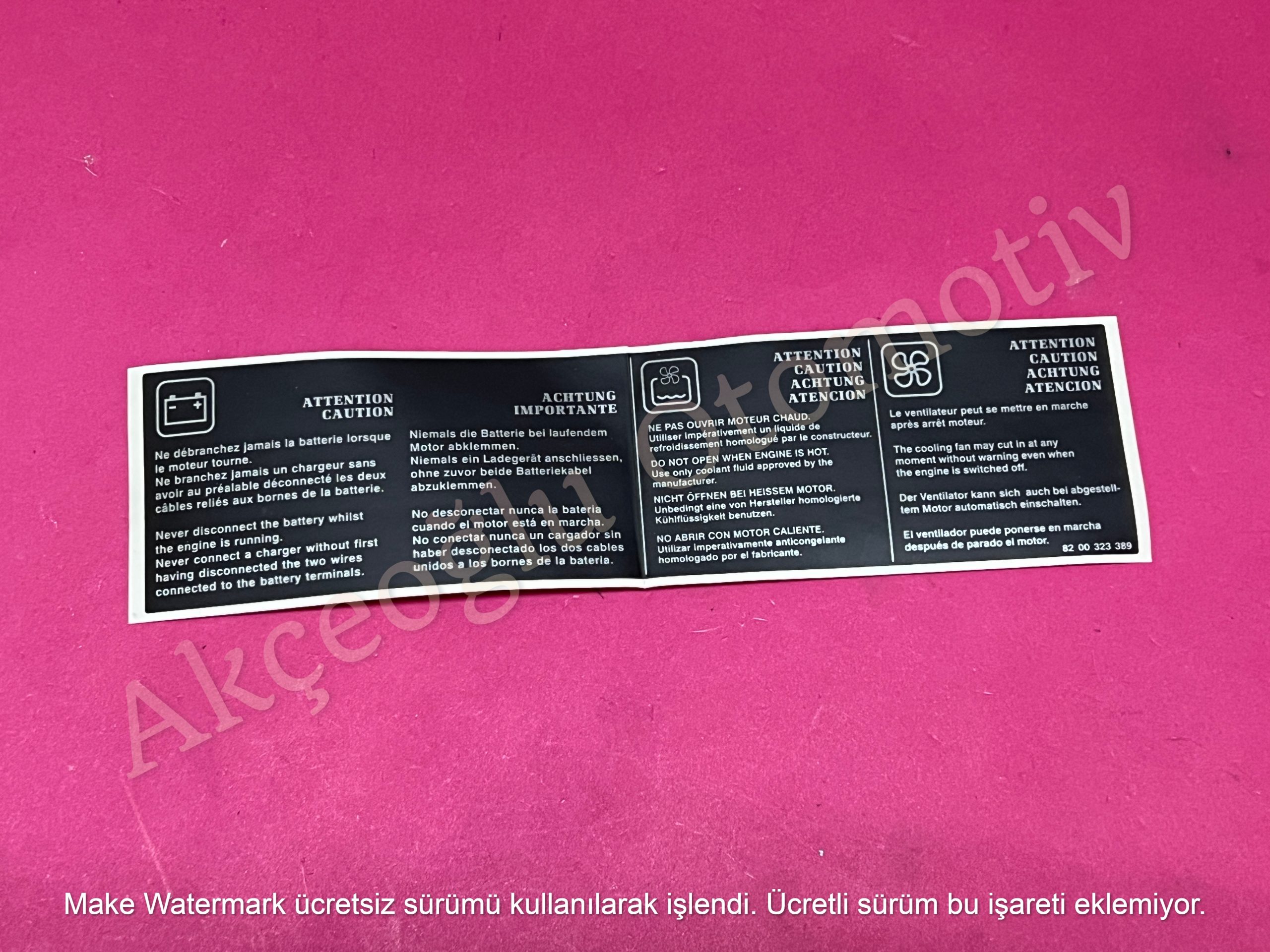 Akü Uyarı Bilgilendirme Etiketi Dacia Duster Logan Sandero Dokker Lodgy Jogger Stepway ” Orjinal ” – 6001547838 8200323389