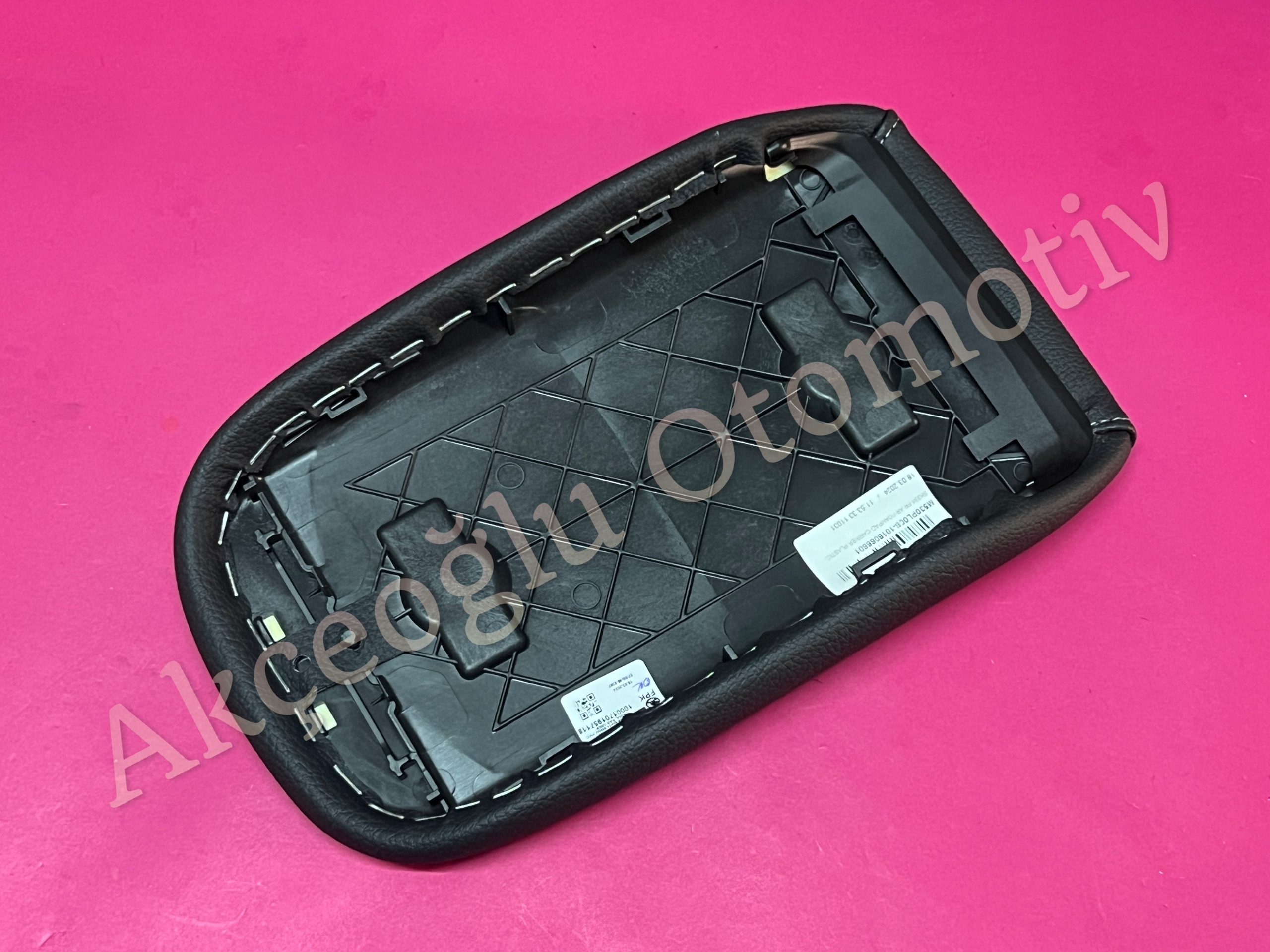 Orta Konsol Kol Dayama Kolçağı Üst Kapağı Skoda Kodiaq Enyaq Elroq E-Prestige ( Siyah Renk Deri Beyaz Dikişli Kaplama ) ” Orjinal ” – 57H864207